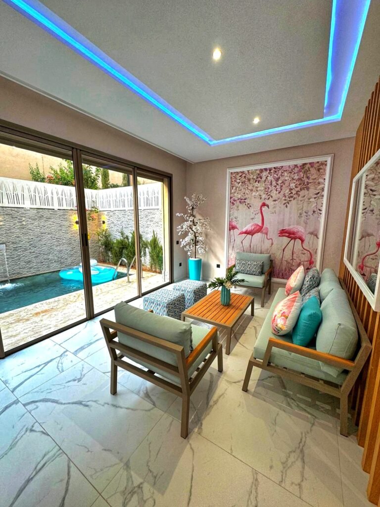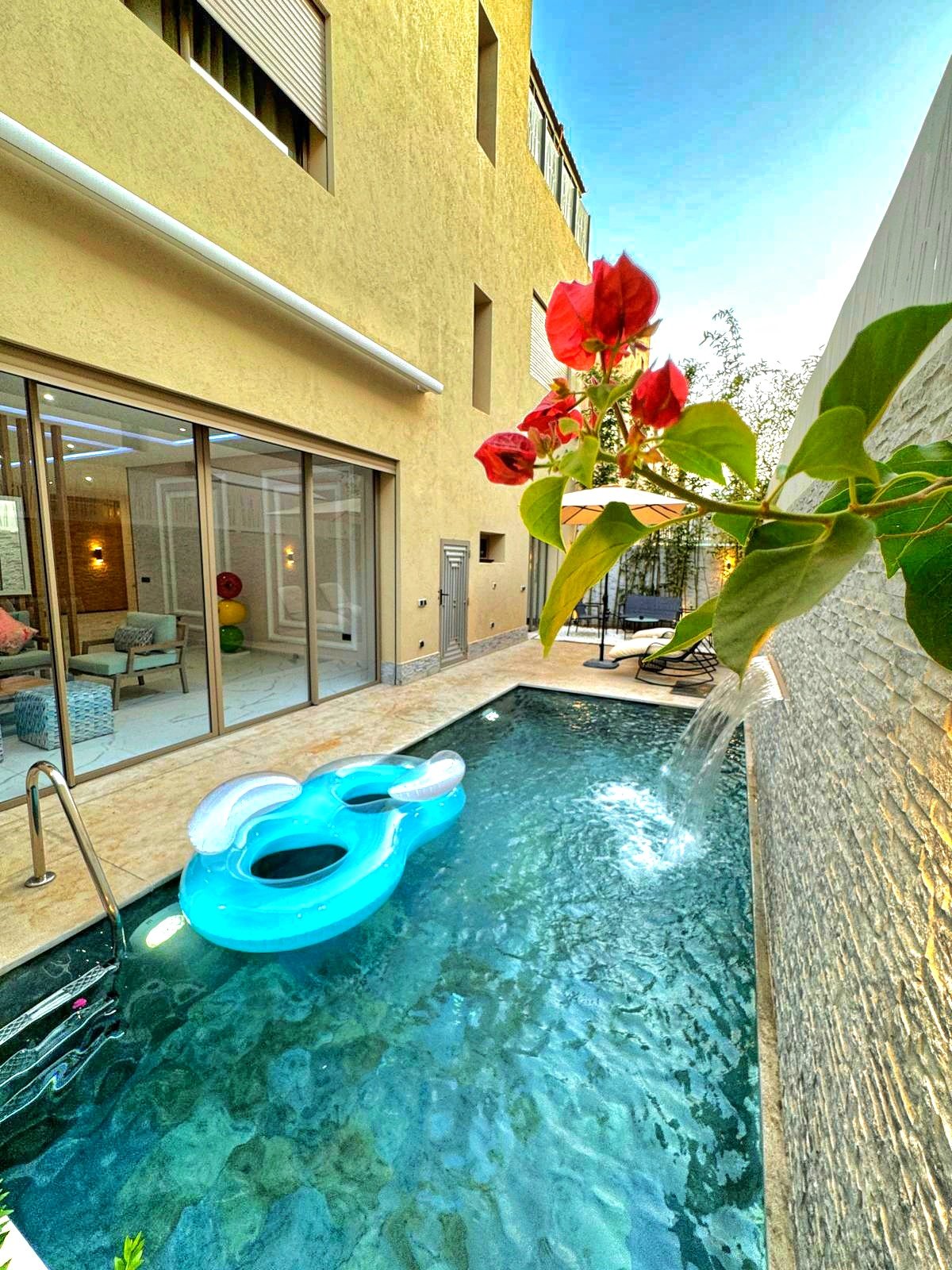 Piscine dotée  d’une couverture motorisée, garantissant  une intimité optimale et une protection idéale lors des journées  ensoleillées de Marrakech.