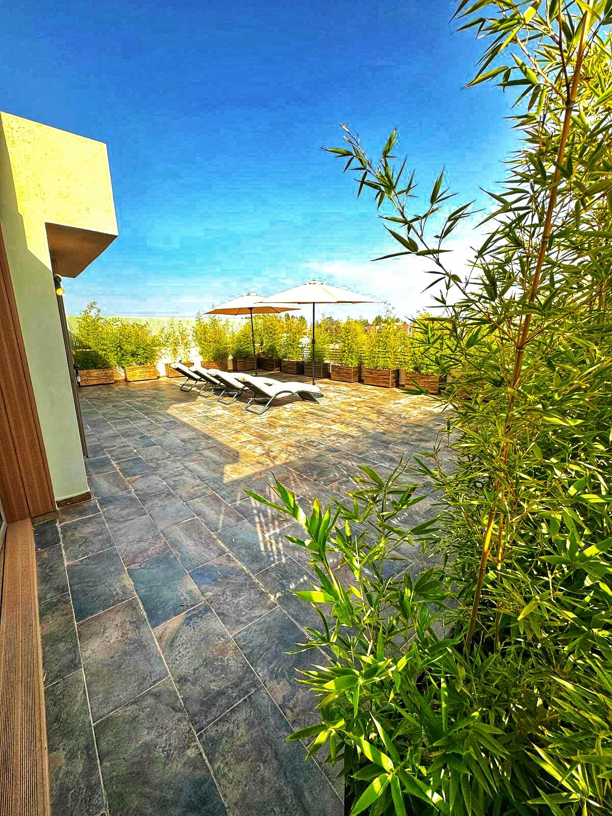 La sérénité de nos espaces extérieurs, des terrasses aux jardins.